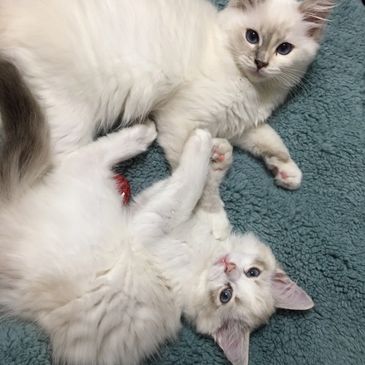 I first fell in love with the Ragdoll breed over 20 years ago. I was watching a "different breeds of cats" special on HGTV and was very intrigued with the Ragdoll breed. I couldn't believe how loving and dog like they were. Knowing my husband didn't really care for cats at the time, I had to do a lot of begging to get our first kitten! After we purchased our first boy he was hooked. I then started breeding Ragdolls and I enjoyed every minute of it. They are amazing cats that love you as much as you love them.