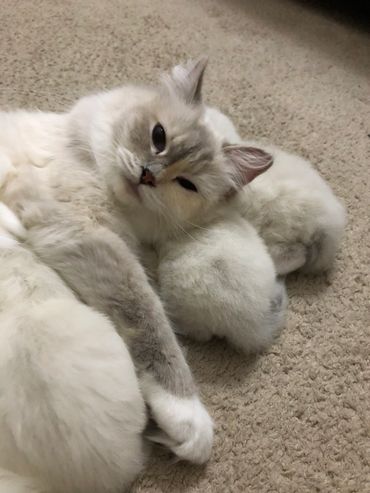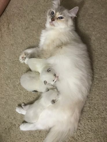 We limit visitors to people who have paid their deposit. Young kittens are extremely vulnerable to airborne diseases. Mothers can be very protective over their babies, and strangers can cause unnecessary stress. So for the health of our babies we don't allow random visits.